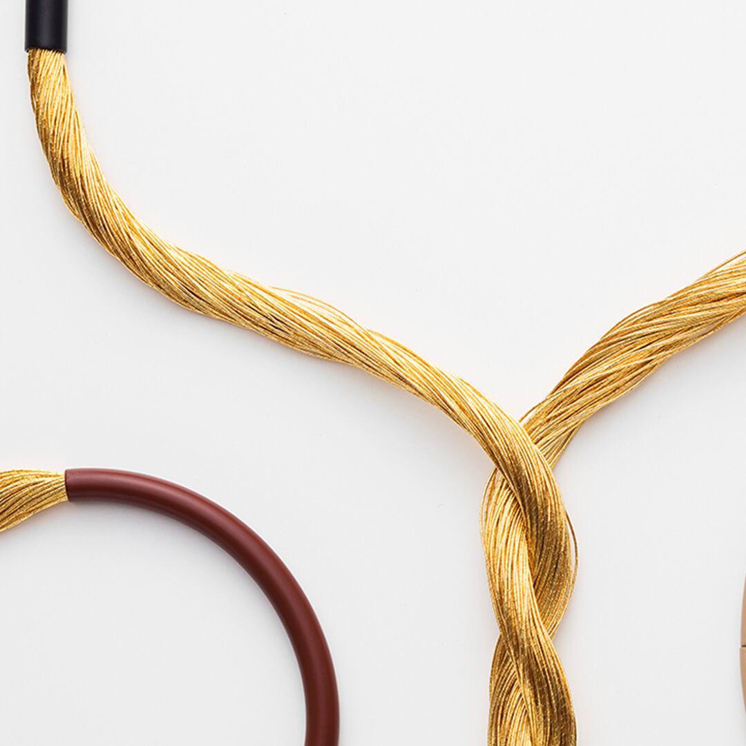 このネックレスに使用されている純金糸は、1400年以上の歴史を持つ日本の職人技の象徴です。高貴な衣装や神社の装飾、歌舞伎の衣装に用いられてきた希少な素材が、現代のアクセサリーとして新たな命を得ました。伝統と革新のバランスを大切にしたデザインは、ジュエリーコレクションに加える価値ある一品です。